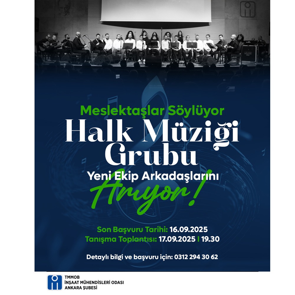 16/09/2025 Ankara Şubemizden Duyuru: Meslektaşlar Söylüyor Halk Müziği Grubu Yeni Ekip Arkadaşlarını Arıyor