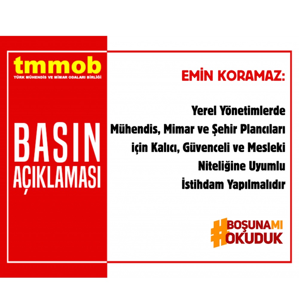 16/09/2025 Yerel Yönetimlerde Mühendis, Mimar ve Şehir Plancıları için Kalıcı, Güvenceli ve Mesleki Niteliğine Uyumlu İstihdam Yapılmalıdır
