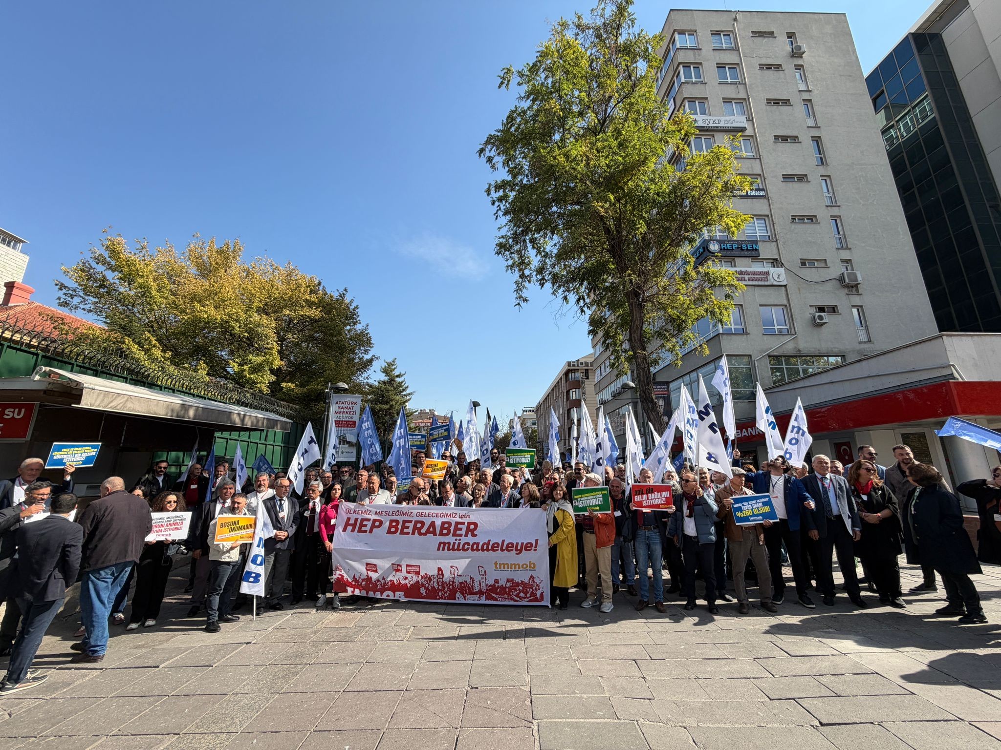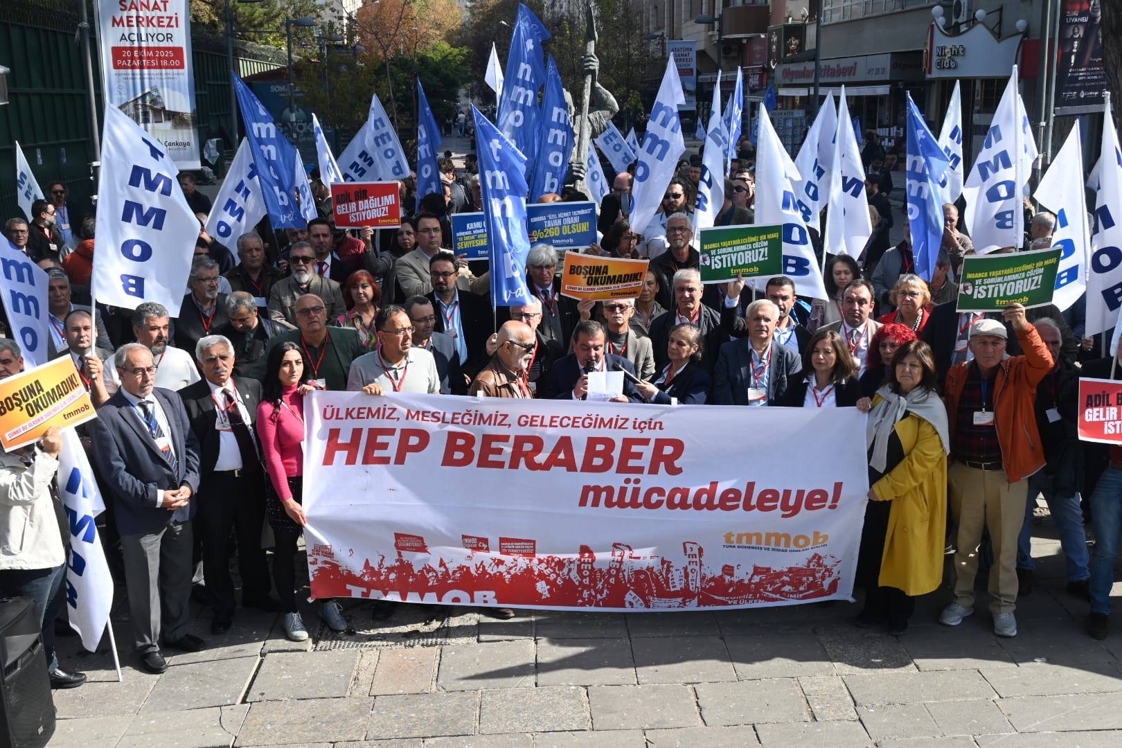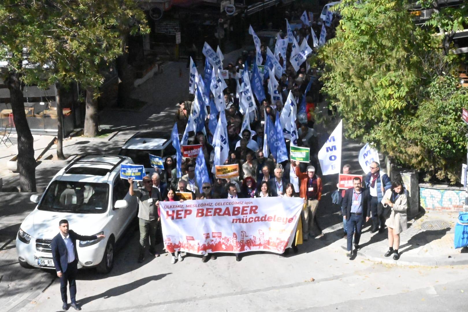 Ülkemizdeki ekonomik, toplumsal ve siyasal krizlerin meslektaşlarımıza ve meslek alanlarımıza etkilerinin ve bu bağlamda yaşanan sorunları gündeme getirmek amacıyla MMO Eğitim ve Kültür Merkezi'nden Madenci Anıtı'na yürünerek burada bir basın açıklaması gerçekleştirildi.