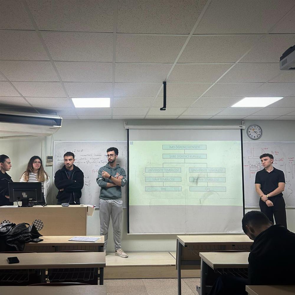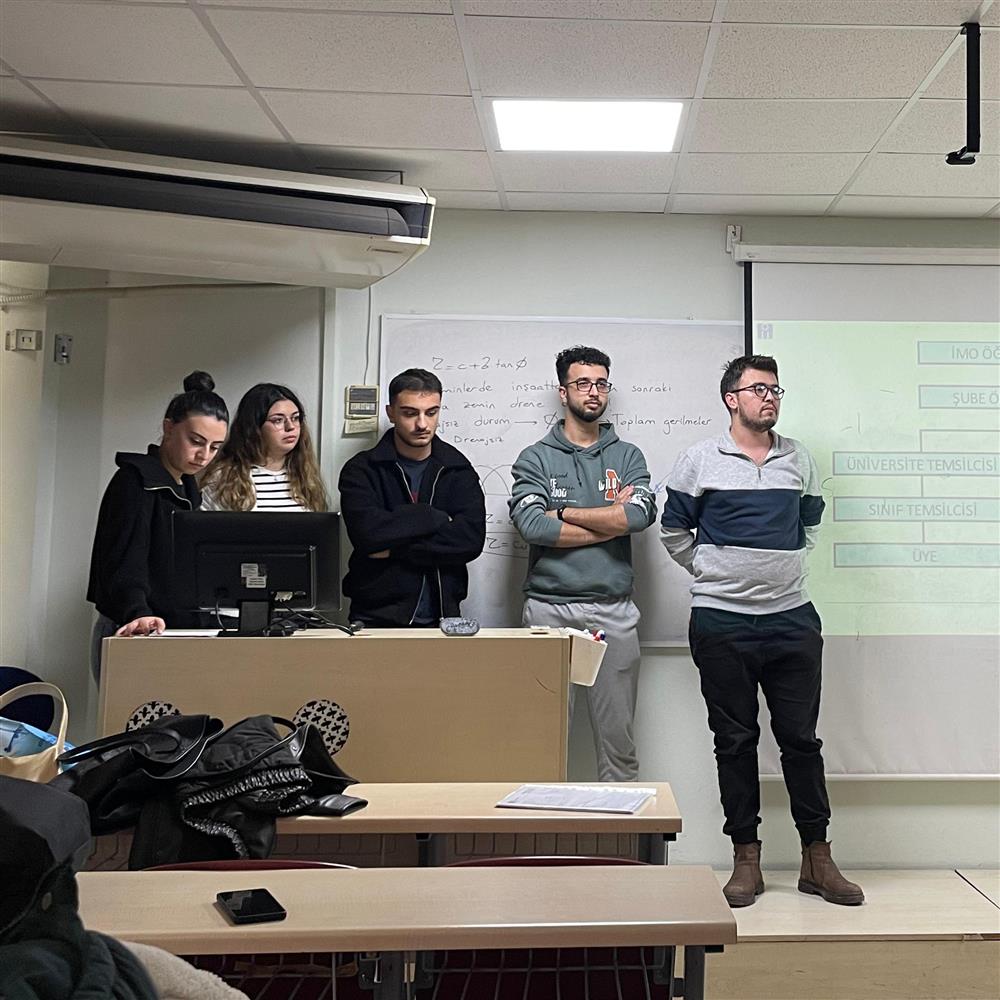 Dokuz Eylül Üniversitesi İnşaat Mühendisliği Bölümü birinci sınıf öğrencilerine yönelik olarak İMO izmir Şube Araştırma Görevlisi Melike Yıldırım tarafından 24 Ekim 2025 tarihinde genç-İMO tanıtım sunumu gerçekleştirildi.