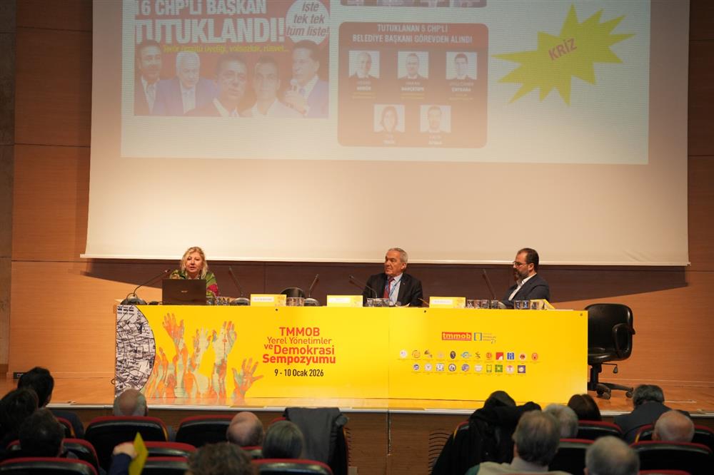 Yerel yönetimlerde yaşanan değişim ve dönüşümlerin ekonomiye ve toplumsal yaşama, kentlerimiz ve meslek alanlarımıza etkilerinin değerlendirildiği TMMOB Yerel Yönetimler ve Demokrasi Sempozyumu 9-10 Ocak 2026 tarihlerinde İMO Teoman Öztürk toplantı salonunda gerçekleştirildi.